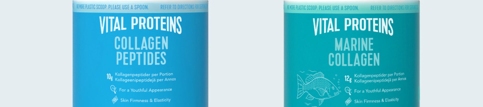 (*) Minskning av plastens vikt. Gäller Vital proteins Collagen Peptides förpackningsstorlek 284 g. Produktens nettovikt ändras inte.
